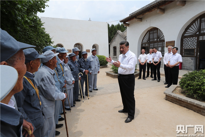 在晉綏軍區(qū)司令部舊址,總書記同當(dāng)年在晉綏邊區(qū)參加對(duì)敵斗爭(zhēng)的老戰(zhàn)士們親切交談。習(xí)近平說,呂梁我是第一次來,我心里一直向往著晉綏根據(jù)地。今天,全黨全國(guó)各族人民正在為實(shí)現(xiàn)“兩個(gè)一百年”奮斗目標(biāo)、實(shí)現(xiàn)中華民族偉大復(fù)興而奮斗。我們一定不能忘記為革命成功拋頭顱、灑熱血的前輩們,不能忘記為抵抗日本軍國(guó)主義侵略、為建立新中國(guó)、為社會(huì)主義革命和建設(shè)作出貢獻(xiàn)的老同志們。