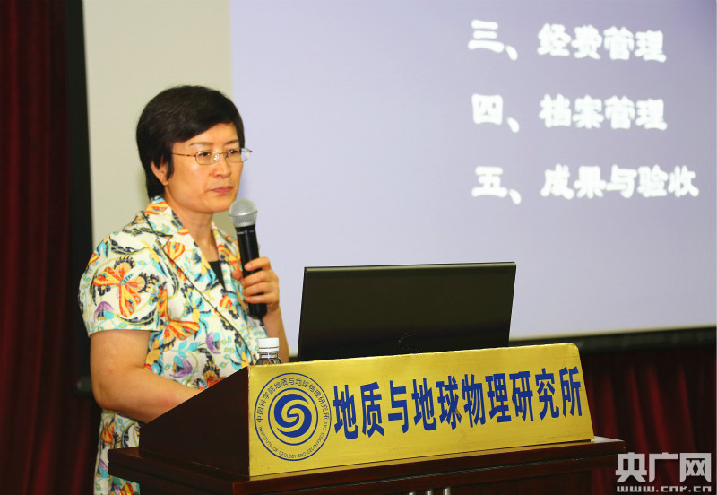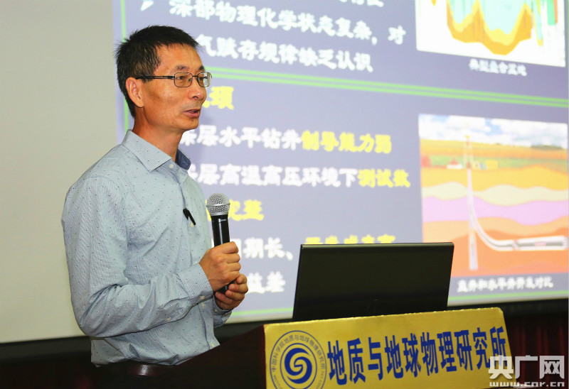 中科院地質與地球物理研究所副所長底青云介紹“智能導鉆”先導專項的組織實施(記者黃光輝攝)