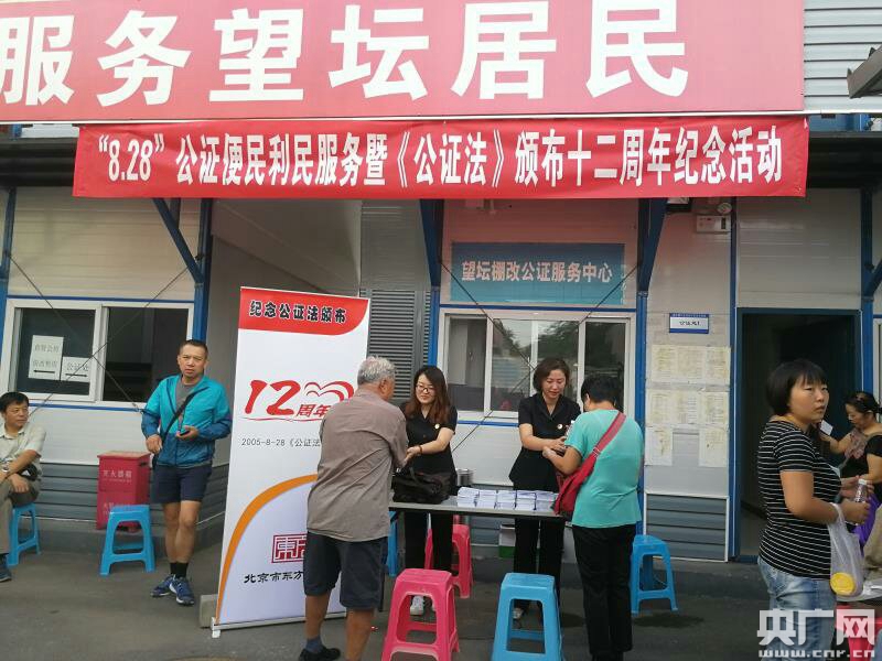北京市東方公證處在東城區(qū)疏解整治促提升專項(xiàng)工作中,發(fā)揮了重要作用,依法公證,耐心服務(wù),為中心工作分憂,為棚改群眾解難。8月28日前后,他們?cè)谑杞庹未偬嵘锔墓ぷ鳜F(xiàn)場(chǎng)——望壇棚改總指揮部公證室為群眾提供免費(fèi)公證法律咨詢。