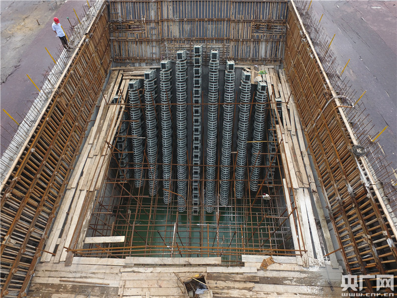 “由于楊泗港大橋的特殊設(shè)計(jì),其錨碇需承受的力相對(duì)更大。”據(jù)中鐵大橋院副總工程師徐恭義介紹,楊泗港大橋位處“橋群”河段,橋址8.2公里范圍內(nèi)就有4座橋梁(分別為武漢長(zhǎng)江大橋、鸚鵡洲大橋、楊泗港大橋、白沙洲大橋)。考慮到通航和交通量等因素,大橋設(shè)計(jì)為主跨1700米的雙層雙向10車道公路懸索橋。由于橋梁跨度大,根據(jù)懸索橋結(jié)構(gòu)受力特點(diǎn),直接導(dǎo)致了大橋主纜拉力大,橋塔壓力大、基礎(chǔ)規(guī)模大。大橋共兩根主纜,單根設(shè)計(jì)拉力為6.5萬(wàn)噸,所承受的拉力足以吊起一艘航空母艦。楊泗港長(zhǎng)江大橋南錨碇位于武昌岸,其主要功能是承受大橋主纜的拉力。作為大橋的重要受力結(jié)構(gòu)之一,南錨碇和北錨碇將要拉住全橋的重量。