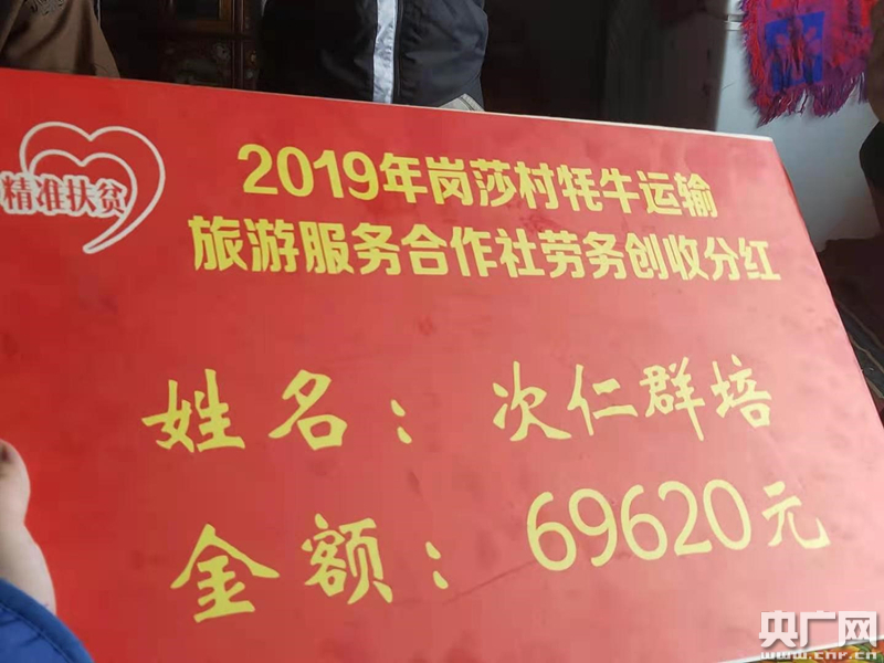 次仁群培展示去年的分紅收入(中央廣播電視總臺央廣記者 楊森 攝)