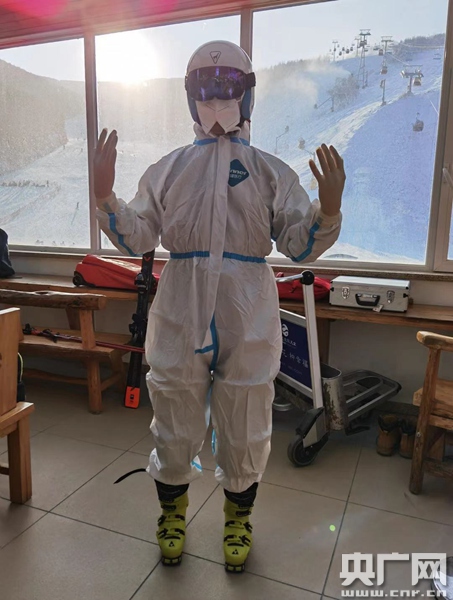 練習穿隔離服在雪道滑行(央廣網發 受訪者供圖)