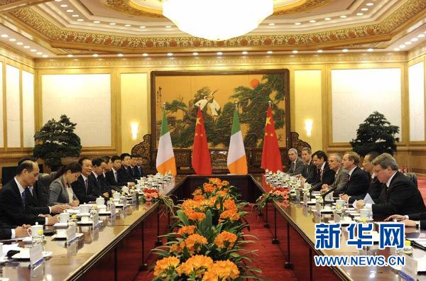 3月27日,國務院總理溫家寶在北京人民大會堂同愛爾蘭總理肯尼舉行會談。 新華社記者 饒愛民 攝