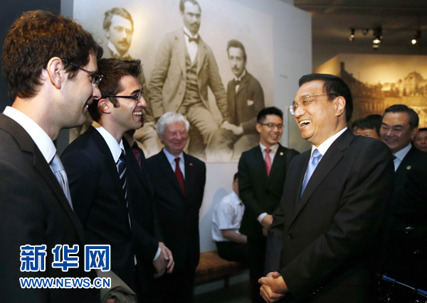 李克強(qiáng):“ 我很希望,不僅是你們,更多的伯爾尼、瑞士的青年在參觀這兩個(gè)展覽以后他們?cè)敢庾鲋腥鹩颜x的使者。”