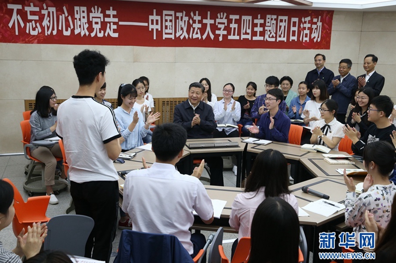 5月3日,中共中央總書記、國家主席、中央軍委主席習近平來到中國政法大學考察。這是習近平在學生活動中心參加民商經濟法學院本科二年級2班團支部開展的“不忘初心跟黨走”主題團日活動。新華社記者 姚大偉 攝