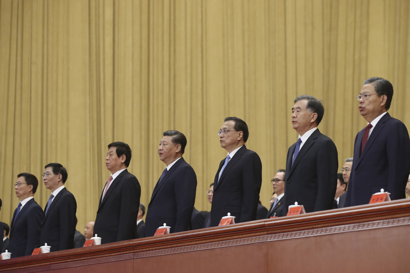 大會主席團常務(wù)主席王東明宣布大會開幕。全體起立,高唱國歌。