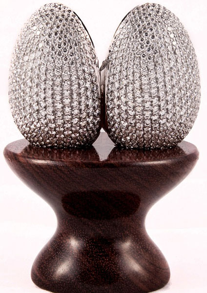 這款奢華的“彩蛋”從外觀來看銀光閃閃,做工十分精致,大小相當于一顆吉百利糖心巧克力蛋。其外部共鑲有910顆鉆石,里面看起來像個小盒子,可放置兩張照片。如果顧客想要紅寶石或藍寶石彩蛋,也可以在該網站定做,僅2個半月就可以制作出來。