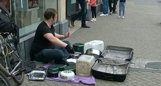 很多游走的街頭藝人會選擇商場周邊的熱鬧地方作為自己的表演場地。近日,英國薩默塞特郡的一名頗有藝術創造力街頭藝人就坐在商場門前,利用鍋碗瓢盆演奏了一首美妙的樂曲。