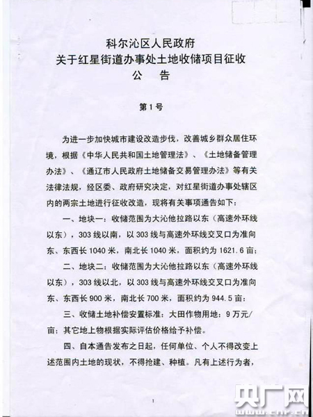 新聞鏈接:科爾沁區村民疑有關部門違規征地 9000萬補償款去向成迷