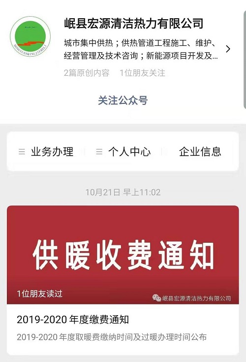 宏源清潔熱力公司公眾號仍然是繳費公告