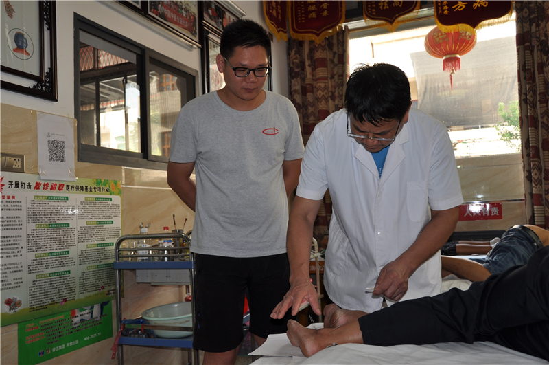 程傳坤觀摩父親行醫(yī)(圖片由受訪者提供)