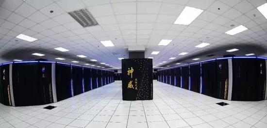這位超級家族成員,平時住在江蘇省無錫市太湖北岸。記者進入國家超級計算機無錫中心,看到的是一個黑黢黢的大家伙,就蹲在有兩個籃球場那么大的屋子里,藍色光點不停閃爍,科技感十足。