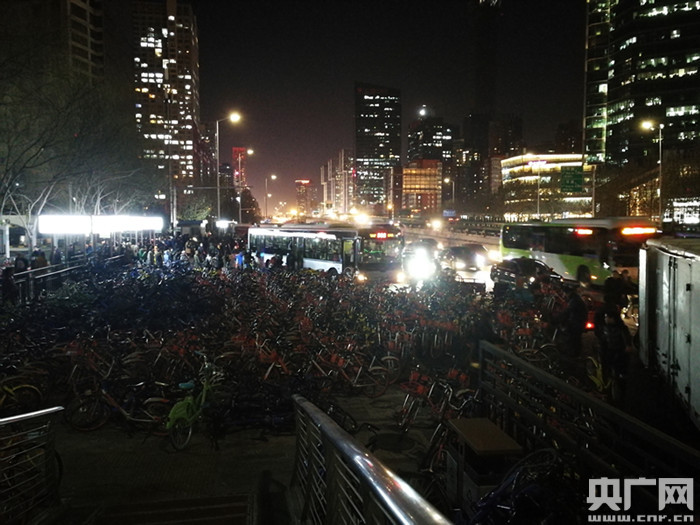 在北京八王墳東公交車站,即北京最大的共享單車“停車場”之一,賣力的吆喝里夾雜著共享單車的清脆鈴聲。每天晚高峰,上千輛共享單車從周邊涌來,依靠交警執勤和調度車不斷清理,才能給開往通州的公交車留一條“出路”。用戶劉先生告訴記者:“這車特別多,很多車就這樣堆著,沒人騎,騎之前還要擦一下。”