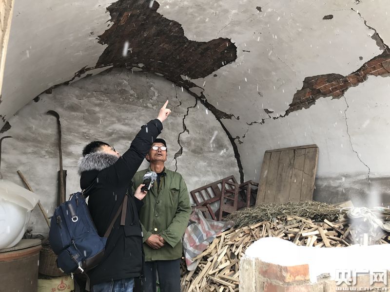 記者在村子里看到,離村民房子不足50米的地方,有一座叫“上河煤業”的廠礦,停產的廠區已經人去樓空。這座私人煤礦,留給村莊的是一間間嚴重變形、裂縫的房子,有的已經完全倒塌。村民張王孝說:“有裂的,尤其現在臨時搭建的石棉瓦房,彩鋼瓦房。過去把它支撐住,現在就在那邊住著。最嚴重的時候都倒了。”