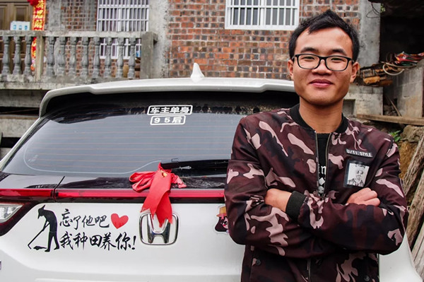 韋德票全款買的小車,車上貼著他對美好生活的向往。