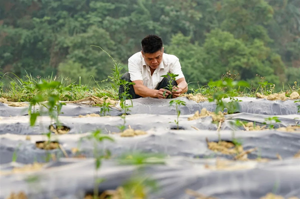 那利屯百姓靠著一雙手,努力甩掉窮帽子。貧困戶韋德干種植辣椒供養著兩名大學生子女。