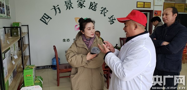 楊長(zhǎng)太向記者介紹自己的家庭農(nóng)場(chǎng)(中央廣播電視總臺(tái)央廣記者 胡曉輝 攝)