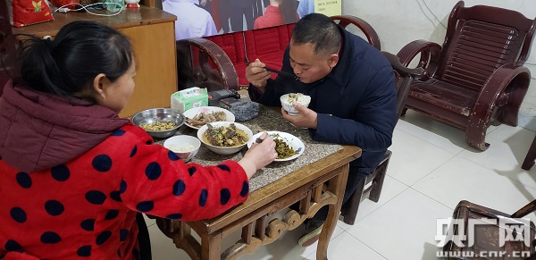 晚上夫妻倆一起吃晚飯(中央廣播電視總臺(tái)央廣記者 胡曉輝 攝)