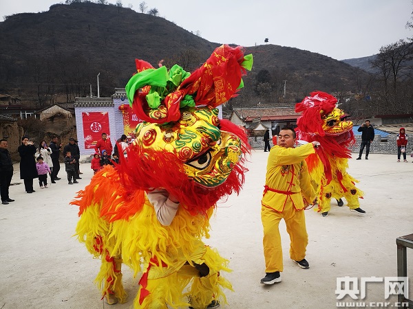 村里的舞獅表演(中央廣播電視總臺央廣記者 孟永輝 攝)