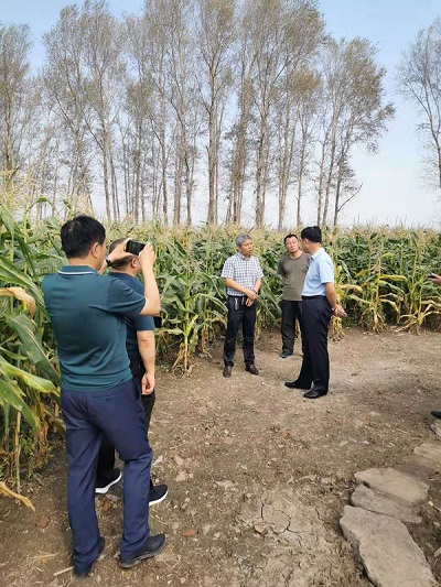 縣里面帶技術員來查看玉米長勢(央廣網發 郭景運提供)