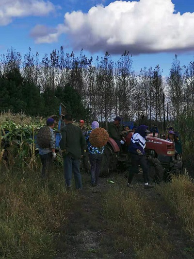 貧困戶們在操作機器收獲甜玉米(央廣網發 郭景運提供)