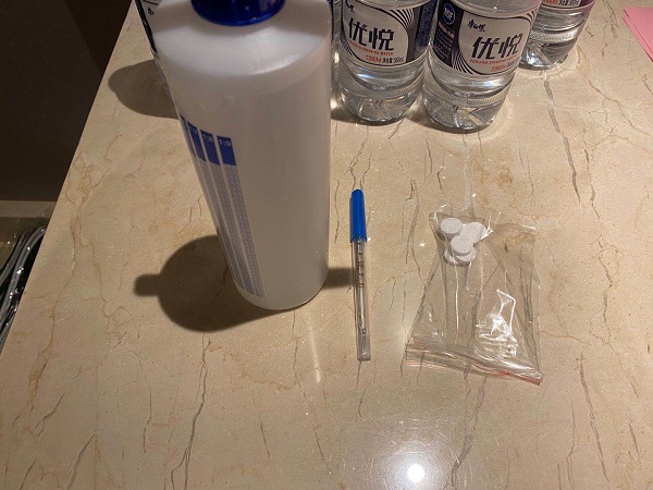 南通隔離酒店體溫計和消毒用品(受訪者供圖)
