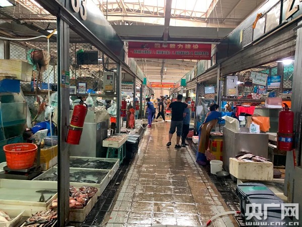 13日上午,大洋路海鮮市場內,除三文魚外其他攤位正常營業(中央廣播電視總臺央廣記者 任夢巖 攝)