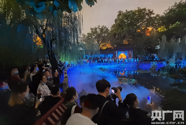 在黃鶴樓鵝池欣賞實景表演的市民朋友 (央廣記者常亞飛 攝)