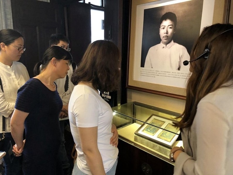 講解員給觀眾講述張人亞父子兩代守護(hù)《共產(chǎn)黨宣言》的故事