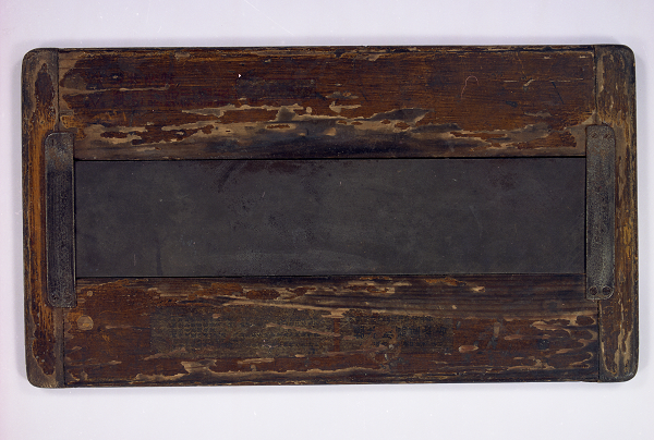 這塊刻蠟紙用的鋼板,呈長方形,鑲嵌在一塊斑駁的木板內。震驚中外的“五卅慘案”發生時,上海街頭紛飛的許多傳單都是在這塊鋼板上刻印出來的。