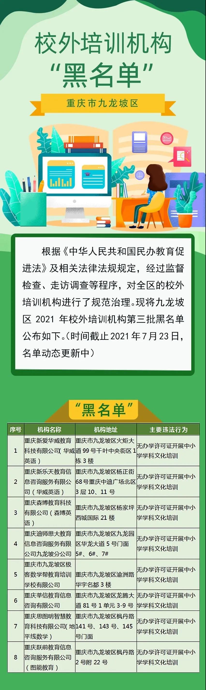擦亮眼睛!九龍坡披露校外培訓機構“黑名單”