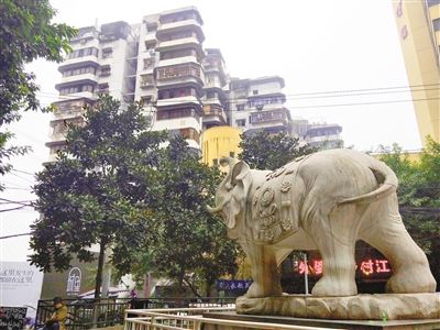 在白象賓館旁邊,記者看到這棟樓,門廊上寫著“白象居”三個大字。大樓依山而建,站在解放東路數,露出來的一共有9層,再往下看,深不見底。