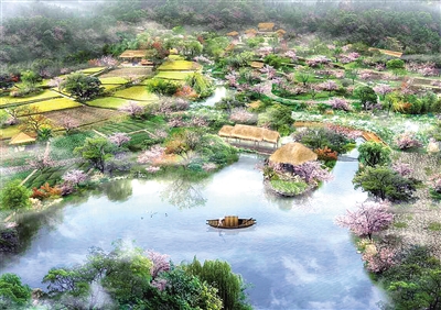 新桃花源,將完全再現陶淵明筆下《桃花源記》所描述的情景和內容。為此,景區優化了游覽線路、房屋建筑、道路交通、水體景觀以及植物配比等,還原1000多年前寧靜和諧、與世無爭的世外桃源詩畫生活。