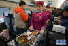 渝貴鐵路25日正式開通,重慶始發的D8581次實現2小時直達貴陽。圖為乘務人員送上的重慶與貴州兩地美食。新華網 張免 攝 -