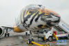 2月12日早上08:30分,一架外觀噴涂為老虎的巴西航空工業ERJ-190-E2客機降落重慶江北國際機場,在經過近3小時停留加油后,于11:16分安全起飛前往哈薩克斯坦。據了解,這次停留主要是給飛機補充燃油。飛機從新加坡起飛,經停重慶“吃飽喝足”后,飛往哈薩克斯坦阿拉木圖進行下一站演示。新華網發(重慶江北國際機場供圖) -