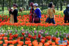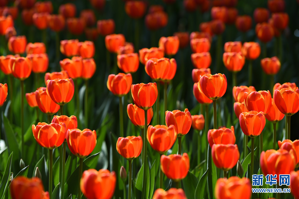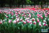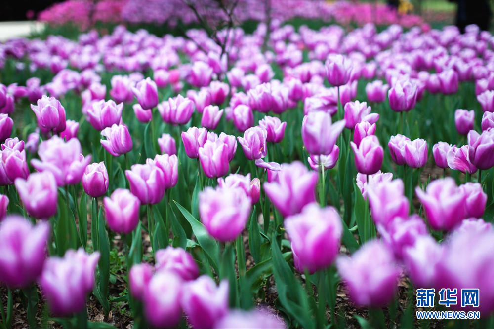游客在郁金香花海中漫步。新華網發(喻慶 攝)