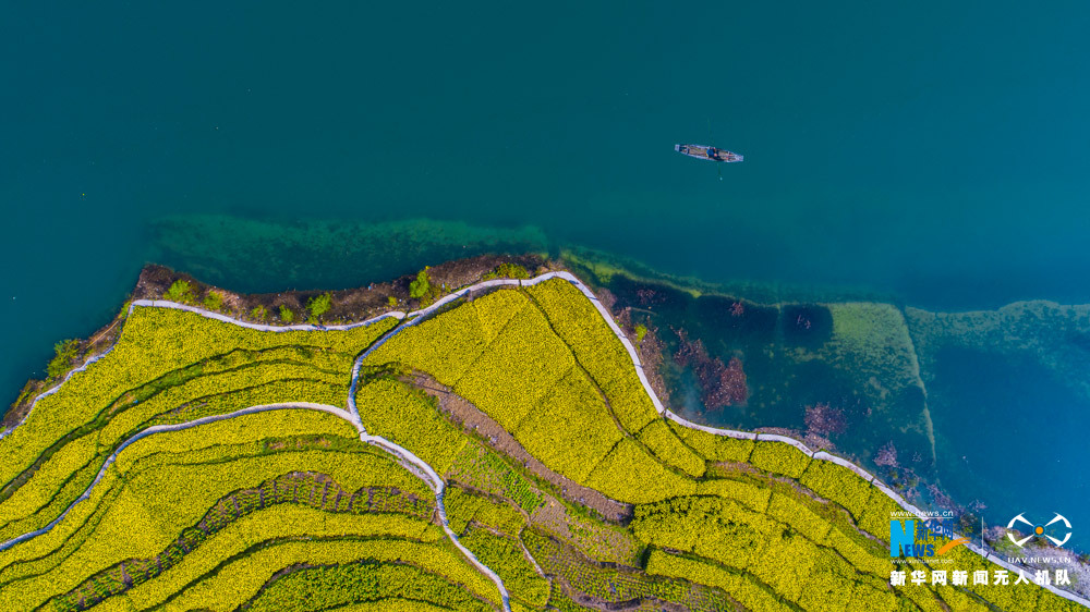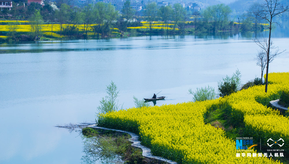 陽春三月,春水初生,花海漸盛。在重慶市黔江區阿蓬江畔,油菜花海沿著江岸蔓延開來,正是半江春色半江水。圖為無人機航拍重慶阿蓬江春色,詩情畫意濃。新華網發(王江龍 攝)