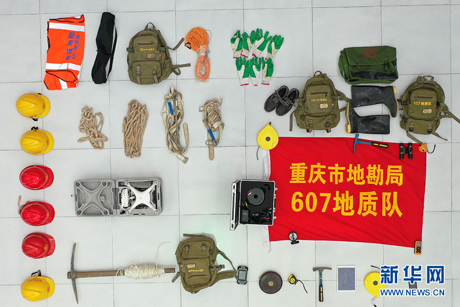 羅盤、地質錘、放大鏡,是地質“三寶”。除了這“三寶”,安全繩、安全帽也是必不可少的裝備。無人機等高科技裝備,則大大提升了地質隊員們的工作效率。新華網發(郭旭 攝)