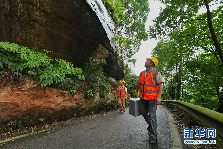 在汛期,每天地質隊員們都要奔波在轄區的各個山體處,用雙腳走出對地質情況的了然于心,也走出了一方百姓的平安。新華網發(郭旭 攝)