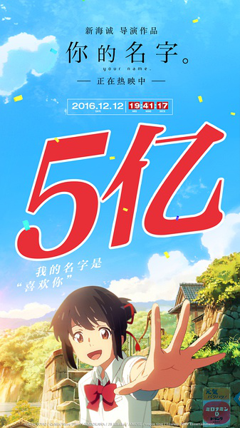 日本動畫電影《你的名字。》累計票房已突破5億人民幣,影片12月2日上映后,連續9天問鼎單日票房冠軍,即將趕超《哆啦A夢:伴我同行》創下的日漫電影在國內上映的票房記錄。最新消息,《你的名字。》獨家版權花落優酷,將于近期上線,很快就可以隨心所欲,想幾刷就幾刷。