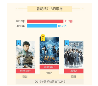 自2010年起,中國電影票房一直保持著高速增長。2016年初,《美人魚》《澳門風云3》《西游記之孫悟空三打白骨精》等春節檔大片繼續攪熱中國電影市場。據淘票票《2016年中國影市報告》數據顯示,春節檔7天上映的9部影片聯手貢獻了36.5億票房,相比去年同比增長19億。其中,《美人魚》更是創下了33.9億的票房奇跡。