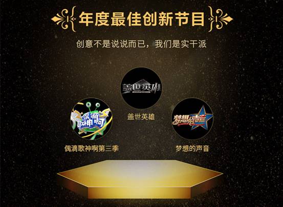 【年度最佳創新節目:《蓋世英雄》、《偶滴歌神啊》第三季、《夢想的聲音》】