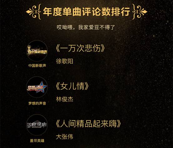 【年度單曲評論數排行:《一萬次悲傷》、《女兒情》、《人間精品起來嗨》】