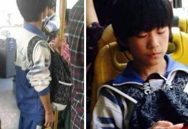 【易烊千璽舊照曝光】日前,一組易烊千璽穿校服坐公交車的舊圖曝光,千璽和現在樣貌差別不大,都是厚劉海,穿著校服的千璽學生氣息濃厚。