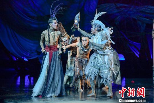 中新網海口4月12日電 (洪堅鵬)由海南省保亭黎族苗族自治縣與中國煤礦文工團共同創作的大型現代民族舞劇《甘工鳥》12日晚在海口首演,將黎族人與鳥的傳統故事搬上舞臺,并以唯美的演技,精彩炫目的舞臺、燈光效果呈現出來。