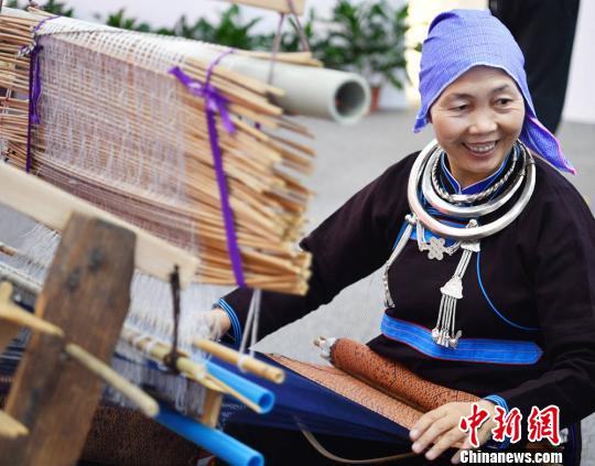 非遺傳承人粟田梅展示侗錦技藝。 陳文 攝