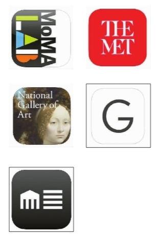 國外美術館的移動客戶端標識,依次為:紐約現代藝術博物館、紐約大都會藝術博物館、華盛頓國家畫廊、紐約古根海姆博物館、克利夫蘭藝術博物館。資料圖片