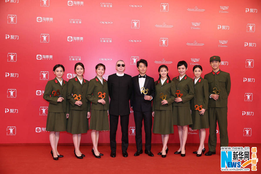 電影《芳華》女主角鐘楚曦隨導演馮小剛、編劇嚴歌苓一同亮相第20屆上海國際電影節的開幕紅毯。她以一身綠色軍服裙裝搭配黑色中粗跟皮鞋走上紅毯,麻花辮發型清爽利落,颯爽英姿在紅毯別具特色。她在片中飾演的蕭穗子,嚴歌苓是以自己的少女時代為藍本。昨天兩人在后臺見面,格外有意義。嚴歌苓贊她把角色的小叛逆詮釋傳神。