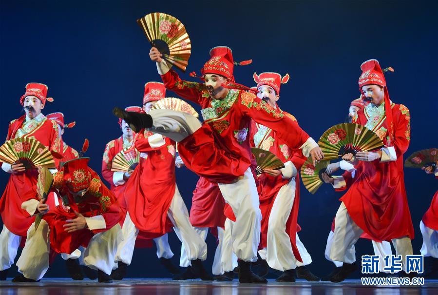 11月11日,演員在福建舞蹈“百合花獎”決賽中表演舞蹈《公子游》。 11月11日晚,第四屆福建舞蹈“百合花獎”專業舞蹈大賽決賽拉開帷幕。經過激烈角逐,共有33件作品近600名演員進入現場決賽,涵蓋民族民間舞、現代舞、當代舞及芭蕾舞等。新華社記者 宋為偉 攝