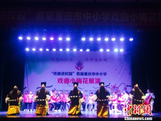 圖為“戲曲進校園”首屆重慶市中小學戲曲小梅花展演決賽現場。 鐘欣 攝